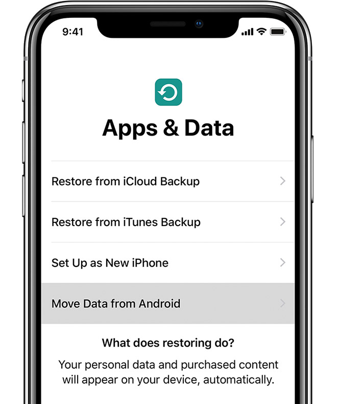 Apple đã tạo ra 1 ứng dụng Android app, được gọi là Move To iOS. Ứng dụng sẽ chuyển tất cả danh bạ điện thoại, lịch sử tin nhắn, tài khoản mail, lịch, hình ảnh, video và ngay cả những ứng dụng đã được tải về trên máy Android. Khi kiểm tra, ứng dụng này có thể chạy trên điện thoại có hệ điều hành Androis 8.1 hoặc thấp hơn. Tuy nhiên, nó lại không hoạt động trên các dòng máy Android 9.